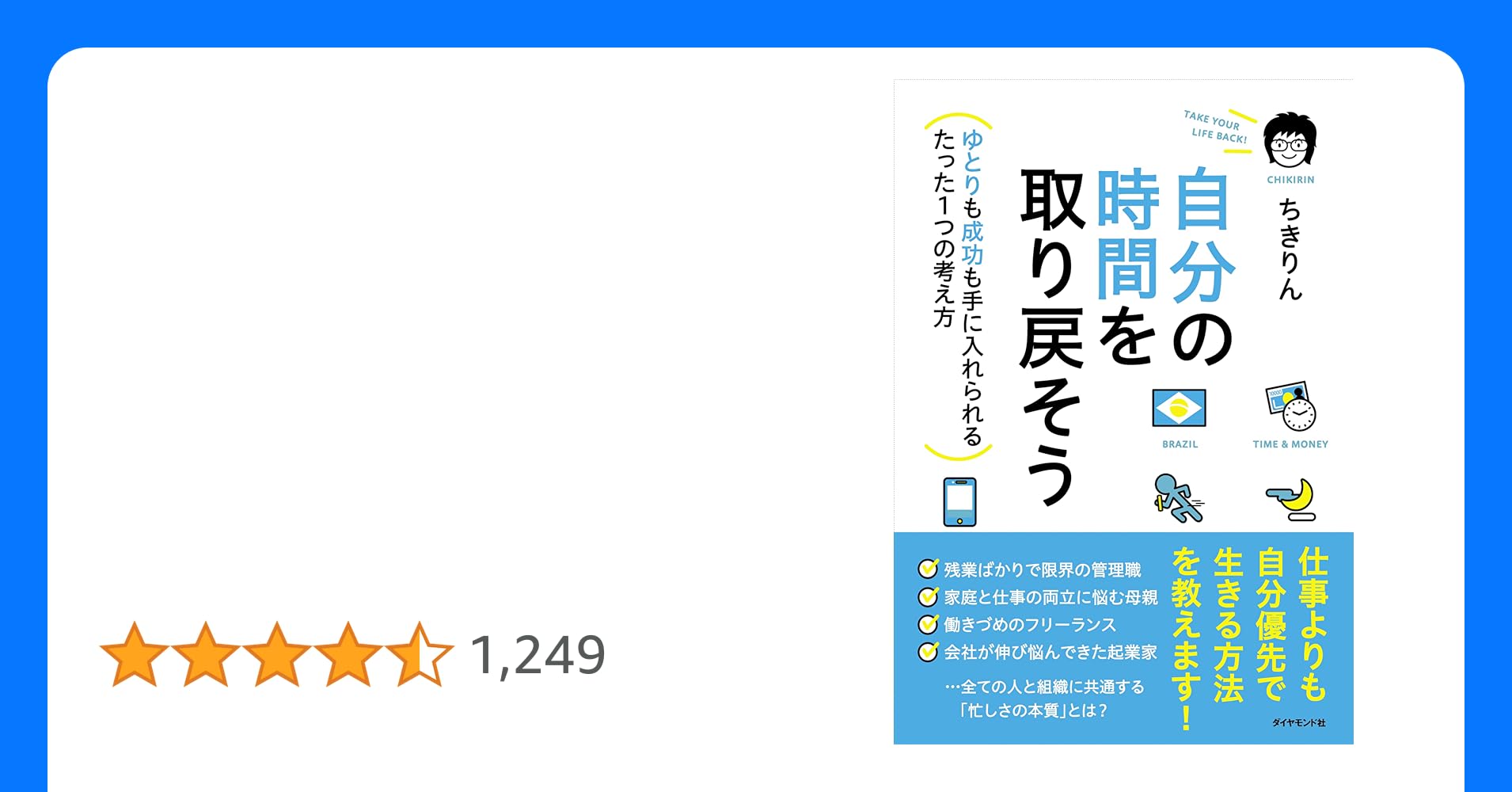 残業ばかりで限界の管理職、正樹。 家庭と仕事の両立に悩む母親、ケイコ。 働きづめのフリーランス、陽子。 会社が伸び悩んできた起業家、勇二。 多忙で余裕のない4人の物語からわかる とは? そして今、 とは? 2つの視点から明らかになる、 。 ...