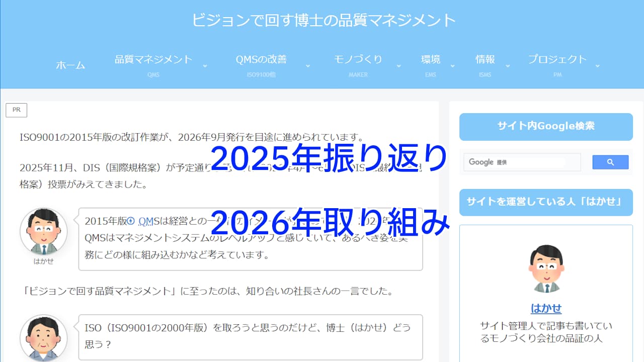 2025年は、2026年9月発行予定のISO9001:2026年版の進捗が気になる1年でした。