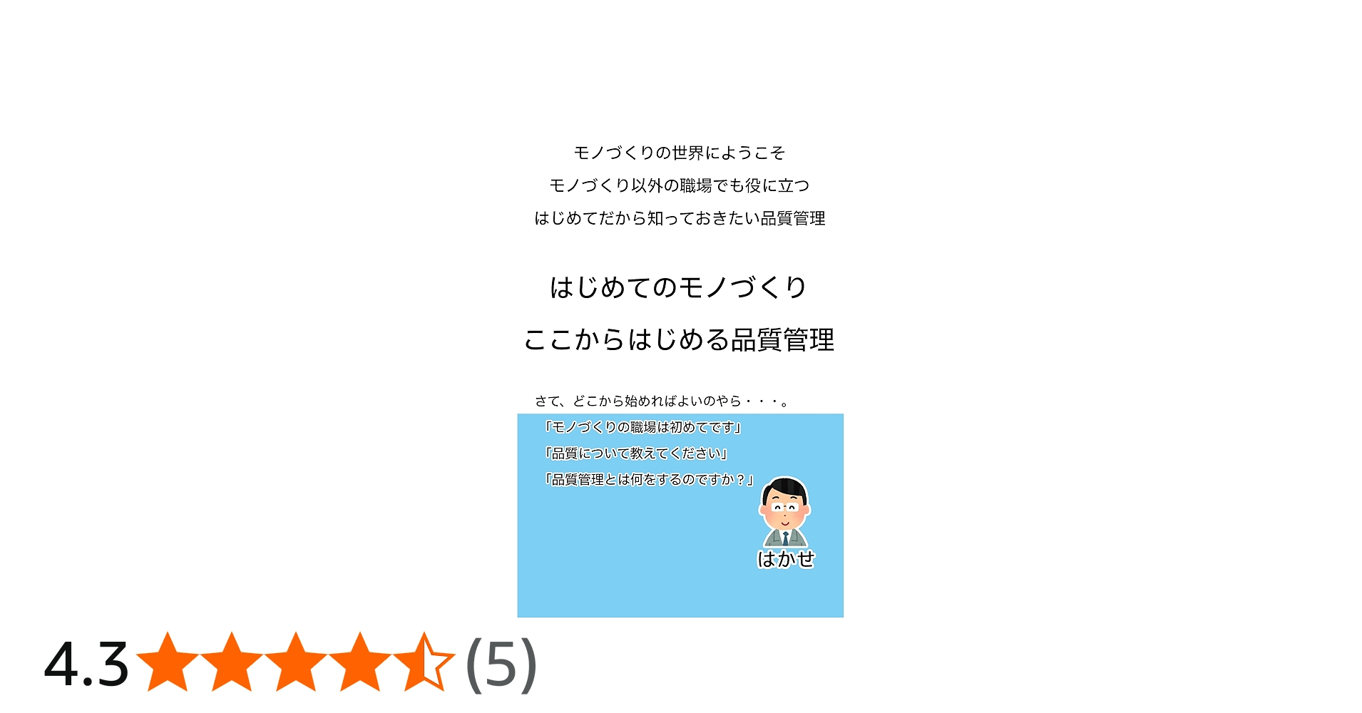 「はじめてのモノづくり ここからはじめる品質管理」をヒントに、皆様の会社や職場に合わせたり、実際の事例を加えて品質や品質管理についての教育の助けになれば幸いです。